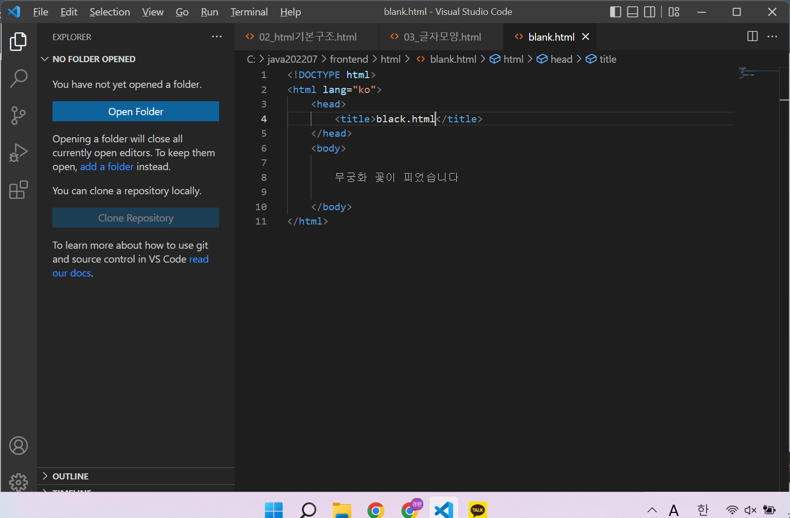 04) HTML문서는 웹브라우저(크롬,엣지,파이어폭스)에서 출력한다.