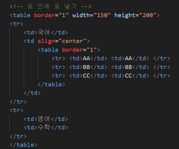 테이블 안에 테이블을 넣는 것도 가능하다.