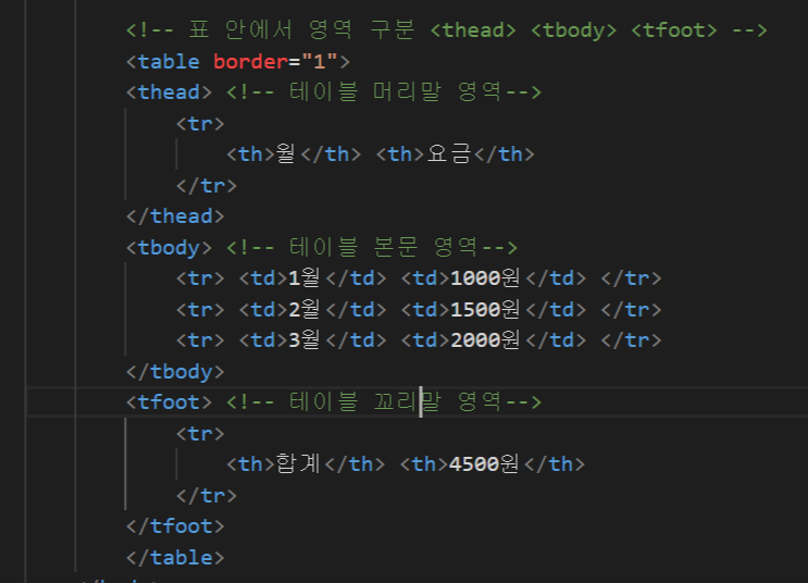 - tfoot : 꼬리말 영역
