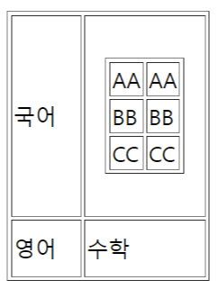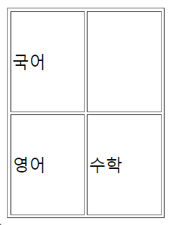 이제 나는 국어의 오른쪽, 수학의 위쪽인 빈 칸에 테이블을 만들려한다.