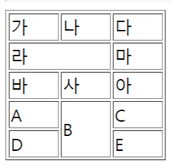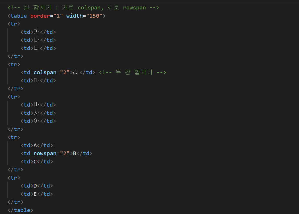 가로일 경우엔 colspan, 세로일 경우엔 rowspan을 쓴다.