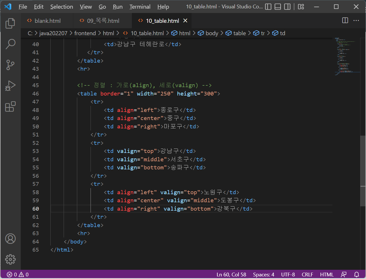 <table> : 테이블 코드의 시작