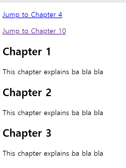 이 경우에 Jump to Chapter 4 버튼을 누르면 html_demo.html 페이지의 C4 아이디를 가진 곳으로 이동하게 된다.