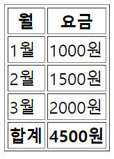 이때 월과 요금의 내용이 들어있는 제목 줄이 머리말 영역, 각 월과 요금들이 적혀있는 줄이 본문 영역, 합계와 합계금액이 적혀있는 곳을 꼬리말 영역으로 구분하였다.