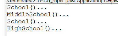 School이라는 부모 클래스 아래에 MiddleSchool 클래스와 HighSchool 클래스를 자식 클래스로 생성했다.
