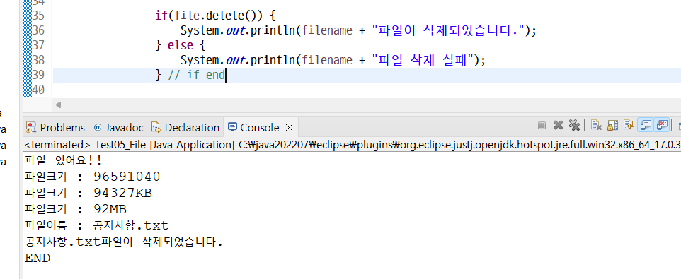 System.out.println(filename + "파일이 삭제되었습니다.");