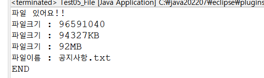 System.out.println("파일크기 : " + filesize/1024/1024 + "MB");
