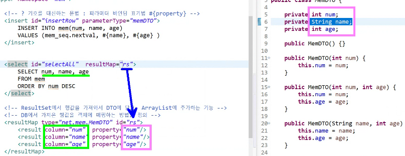 <!-- DB에서 가져온 행 값을 객체에 매핑하는 방법을 정의 -->