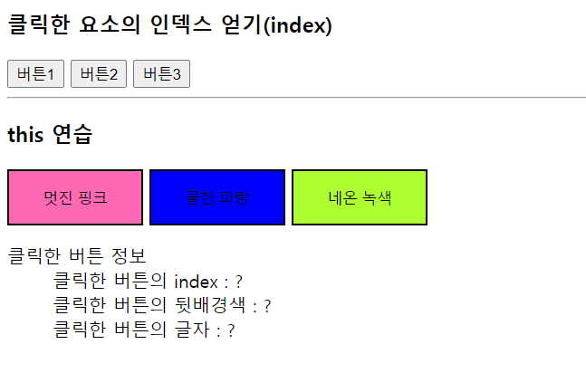 위의 버튼들을 누르면 인덱스의 숫자가 알림창으로 뜨게 되고,